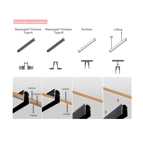 Fixed diffused optics linear. DALI dimmable and CCT changeable available.