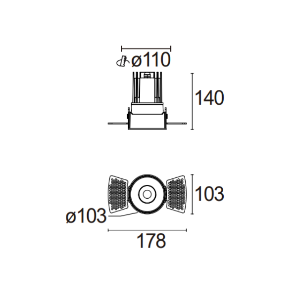Ø103*H140mm, Cutout:110mm (Power:15W/20W/25W/30W)
